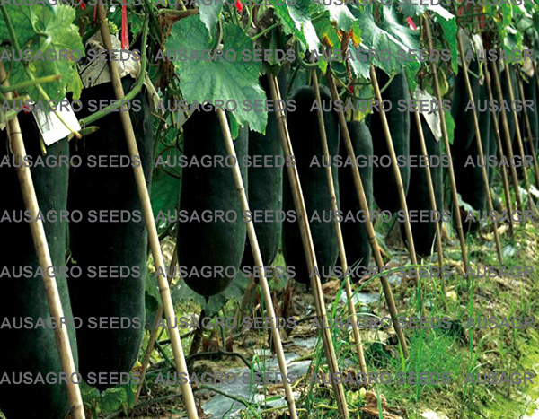 Giant Gem F1 is a hybrid winter melon variety. The fruit is dark black and cylindrical. The fruit is about 80 cm long and 20 cm wide. The average fruit weight is about 16 - 20 Kg. The flesh is thick and fine-textured. The cavity is relatively small. The taste is mild. It is a good shipper.